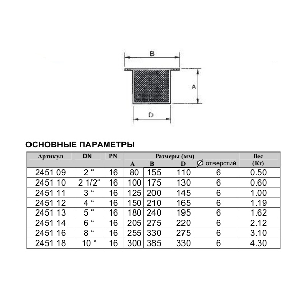 Технические характеристики фильтрующего элемента GENEBRE 2451 Ду 50: