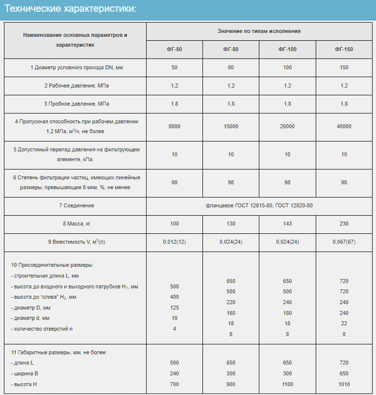 Технические характеристики на фильтр газовый ФГ-100: