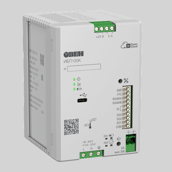 ИБП120К-24 – источник питания с резервированием для питания стабилизированным выходным напряжением 24 В приборов промышленной автоматики в распределенных системах управления.