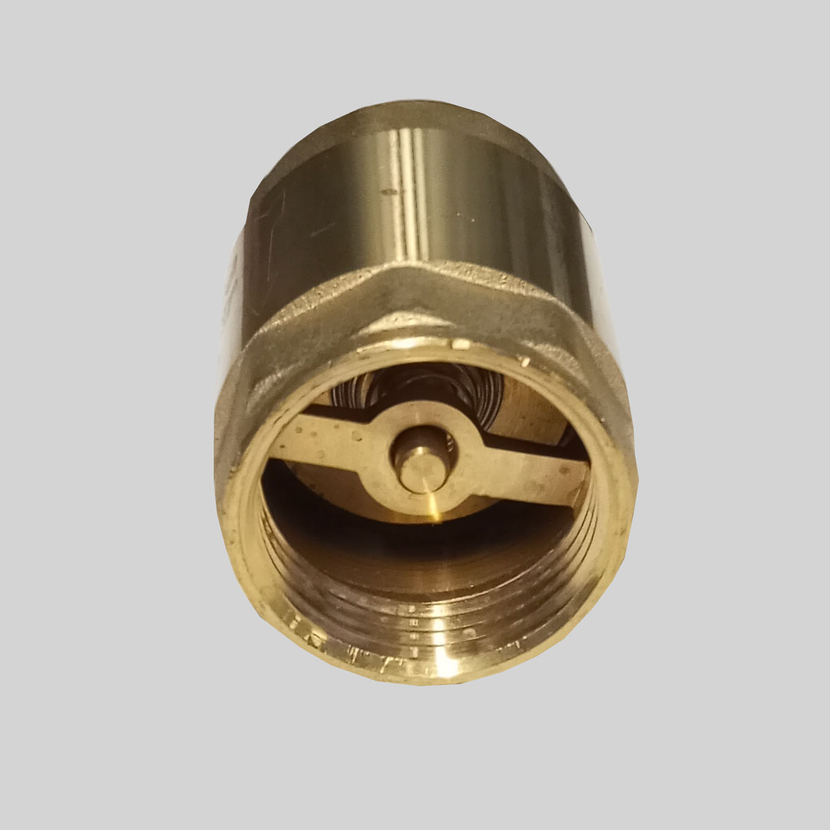 Клапан обратный 1/2" латунь осевой Ду15 Ру16 ВР диск латунь шток латунь SantechSystems