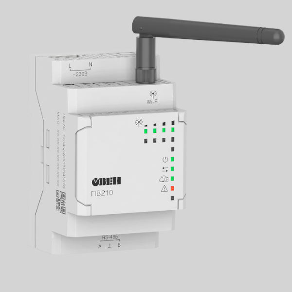 ПВ210-230 предназначен для подключения приборов ОВЕН или оборудования стороннего производителя, имеющих интерфейс RS-485 (протокол Modbus) к облачному сервису OwenCloud.
