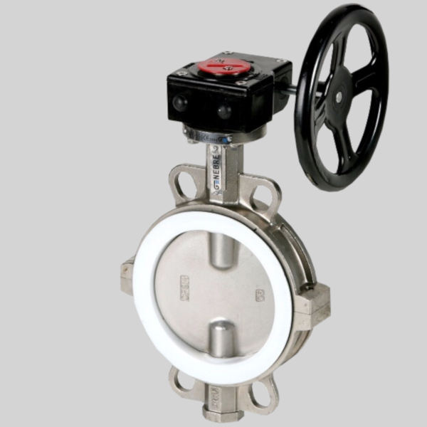 Затвор поворотный дисковый нержавеющий межфланцевый с редуктором GENEBRE 2104 Ду 150 с уплотнением PTFE предназначен для установки в качестве запорного устройства полностью перекрывающего поток рабочей среды и используется в системах холодного и горячего водоснабжения, отопления, а так же для любых жидких и газообразных сред, по отношению к которым материалы затвора коррозионностойки. Технические характеристики затвора GENEBRE 2104 Ду 150: